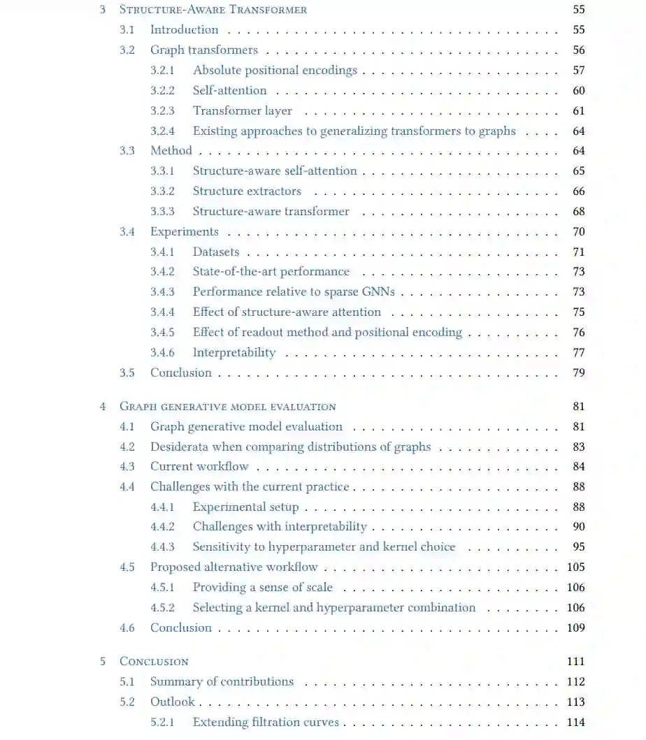 第二个贡献是研究如何结合全局和位置信息来改善图表示。我们引入了一种结构感知的Transformer,它结合了来自消息传递GNNs的局部结构信息和来自Transformer架构的全局信息,这是第一个将Transformer和任意GNN集成到一个单一模块的图Transformer。我们通过引入一种新的结构感知自注意力计算来实现这一点,该计算基于子图在感兴趣的节点处的相似性过滤节点,使得基于结构和属性相似性的比较更加稳健。此外,我们抽象这个公式,并提供一个可以定制到感兴趣的领域的通用框架。我们的图Transformer在几个基准数据集上达到了最先进的性能,并且优于架构的仅全局和仅局部等效项,突显了结合这两种图视角的潜力。 最后,第三个贡献是对当前评估图生成模型的过程的实证分析,该过程依赖于全局图摘要统计和最大平均差异(MMD)。我们发现了社区采用的当前程序中的一些问题,这在最坏的情况下会导致伪结果,因此我们提出了一个修改后的工作流程来避免这些情况。