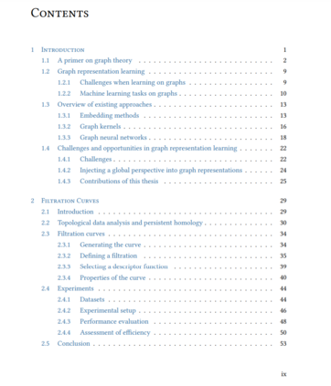 本论文探讨了全局信息在生成有意义的图表示中的作用,这些图表示不受邻域聚合问题的影响。我们并不寻求取代现今强大的邻域聚合方法,而是研究全局信息如何补充或提供图中局部信息的替代视角。 本论文的第一个贡献是介绍一种将图表示为高维曲线的新颖方式,我们称之为过滤曲线。过滤曲线是一种通过在多个尺度上捕捉信息来生成图的全局表示的有效方法,可以完全无参数。基于曲线的表示还带来了其他好处,比如直接创建图的向量表示的方法,使其可以与标准的机器学习算法一起使用。除了其效率和易用性之外,我们发现我们最简单的过滤曲线形式已经达到了与更复杂、高度参数化的最新竞争方法竞争的实证性能,这证明了全局图表示的价值。