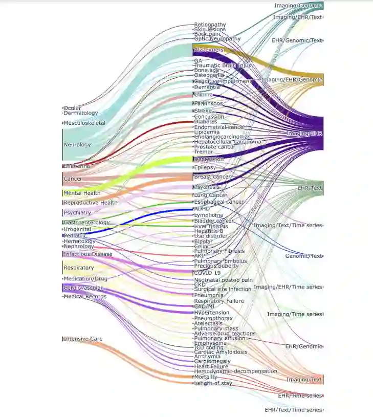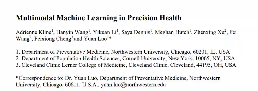 这些发现提供了多模态数据融合应用于健康诊断/预后问题的当前文献的指南。很少有论文将多模态方法的结果与单模态预测进行比较。然而,那些成功的预测精度(AUC)平均提高了4.2%。多模态机器学习虽然在估计方面比单模态方法更稳健,但在可扩展性和信息连接耗时方面存在缺陷。