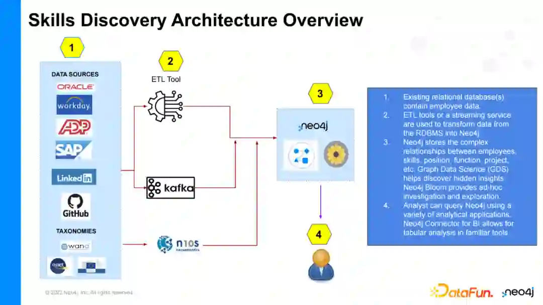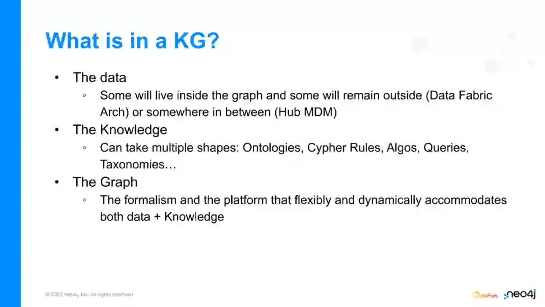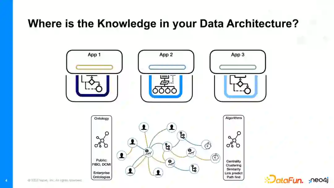 **导读:**Neo4j近年来与众多公司合作,在很多领域中成功结合知识图谱技术,使得知识图谱顺利落地于各个项目中。今天由 Neo4j 的欧洲区售前和技术总监Barrasa博士来介绍知识图谱的技术解析与案例分享。 今天的介绍会围绕下面五点展开: * 数据架构中的知识存在于何处 * 知识图谱在技能发现中的应用 * 知识图谱在元数据管理中的应用 * 知识图谱在语义搜索中的应用 * 总结