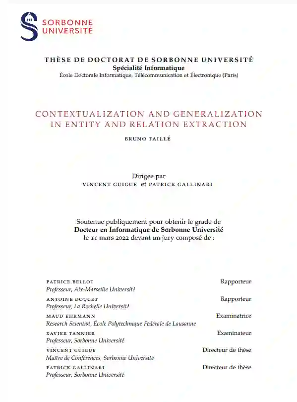 在本论文中,我们研究了最SOTA模型在两个重要的信息提取任务(命名实体识别(NER)和关系提取(RE))中关于在未见事实的泛化性能。事实上,传统基准在提到和关系之间存在重要的词汇重叠,用于训练和评估模型,而信息提取的主要兴趣是提取以前未知的信息。我们提出了基于提及和与训练集的关系重叠来分离性能的实证研究,发现预训练的语言模型主要有利于检测未见提及,特别是域外提及。虽然这使得它们适合于真正的用例,但可见和未见提及之间仍然存在性能差距,这不利于对新事实的归纳。特别是,即使是最先进的ERE模型也依赖于浅层记忆启发式,其预测更多地基于论据表面形式而不是上下文。