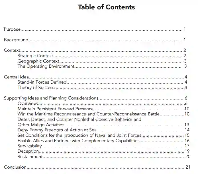 这一概念将在最终满足联合部队指挥官要求的海军战役背景下进行。执行这些行动的海军陆战队员的持久任务是在竞争连续体的每一个点上为这个海军战役进行侦察和反侦察。如果有必要,这些部队将在指定区域进行海上拒止,以支持海军作战。我们必须准备好用我们现有的有机手段做到这一点,但同样重要的是,我们需要完成海军和联合杀伤网,在需要时帮助发挥全域效应。在这样做的时候,海军陆战队将从有争议的地区内扩大舰队和联合部队的范围。
