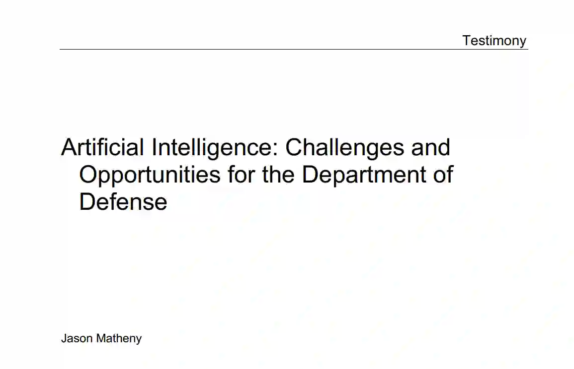 在过去的75年里,兰德公司进行了支持美国国家安全的研究,目前为联邦政府管理着四个联邦资助的研究和发展中心(FFRDCs):一个为国土安全部(DHS),三个为国防部(DoD)。本文将重点评论国防部如何能够最好地确保人工智能(AI)的进展有利于美国国家安全,而不是降低它。