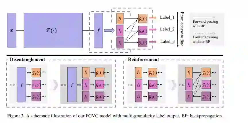 该文被大会录用为Oral论文,是北京邮电大学与英国萨里大学“北邮-萨里人工智能联合实验室”的联合研究成果,指导老师是来自人工智能与网络搜索教研中心的郭军教授、马占宇教授和萨里大学CVSSP中心SketchX Lab的Yi-Zhe Song教授。人工智能学院博士生常东良同学为论文一作。本文首先通过一个Human Study 发现了传统细粒度图像分类任务无法满足大多人需求的问题,进而重新定义了该任务:从单标签分类任务拓展为按照预先定义的层次化标签(从粗粒度到细粒度)进行自上而下的多标签分类任务。此外,通过实验发现粗粒度标签预测任务会抑制细粒度特征的学习,而细粒度标签预测任务则会促进粗粒度特征的学习。该发现促使我们设计了一个简单且高效的解决方案来解决本文提出的新任务:(1)利用与粒度相关的分类器将粗粒度特征与细粒度特征进行解耦;(2)通过一个梯度控制器使得细粒度特征能够参与粗粒度分类器的决策。实验表明,本文提出的方法在新的细粒度图像分类任务中获得了最佳的性能。