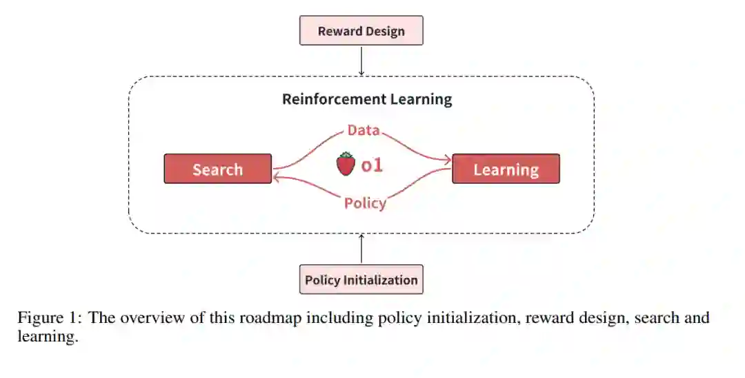 OpenAI的o1代表了人工智能领域的一个重要里程碑,它在许多需要强大推理能力的挑战性任务上达到了专家级的表现。OpenAI声称,o1背后的主要技术是强化学习(OpenAI, 2024a; b)。近期的研究使用了其他方法,如知识蒸馏,来模仿o1的推理风格,但它们的有效性受限于教师模型的能力上限。因此,本文从强化学习的角度分析实现o1的路线图,重点讨论四个关键组件:策略初始化、奖励设计、搜索和学习。策略初始化使模型能够发展出类人推理行为,使其具备有效探索复杂问题解空间的能力。奖励设计通过奖励塑造或奖励建模提供密集而有效的信号,这些信号为搜索和学习提供了指导。搜索在训练和测试阶段生成高质量解中起着至关重要的作用,它能够通过更多的计算产生更好的解决方案。学习则利用搜索生成的数据来改进策略,从而通过更多的参数和更多的搜索数据实现更好的性能。现有的开源项目,尝试重现o1的工作,可以看作是我们路线图的一部分或变体。总的来说,这些组件突显了学习和搜索如何推动o1的进步,并为大规模语言模型(LLM)的发展做出了有意义的贡献。