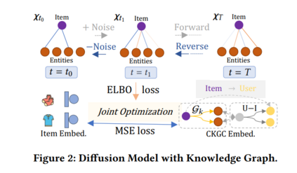 知识图谱(KGs)已成为通过提供大量事实信息和捕捉项目之间的语义关系来丰富推荐系统的宝贵资源。利用知识图谱可以显著提高推荐性能。然而,并非知识图谱中的所有关系对于目标推荐任务都同等相关或有益。事实上,某些项目-实体连接可能引入噪声或缺乏信息价值,从而可能误导我们对用户偏好的理解。为了弥补这一研究空白,我们提出了一种新颖的知识图谱扩散模型用于推荐,称为DiffKG。我们的框架将生成扩散模型与数据增强范式结合起来,实现了健壮的知识图谱表示学习。这种集成有助于更好地将知识感知的项目语义与协同关系建模对齐。此外,我们引入了一种协同知识图谱卷积机制,它结合了反映用户-项目交互模式的协同信号,指导知识图谱扩散过程。我们在三个公开可用的数据集上进行了广泛的实验,一致地证明了我们的DiffKG与各种竞争基线相比的优越性。我们在以下链接提供了我们提出的DiffKG模型的源代码仓库:https://github.com/HKUDS/DiffKG。