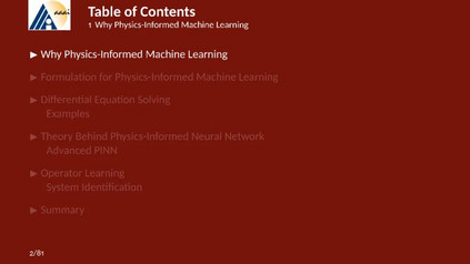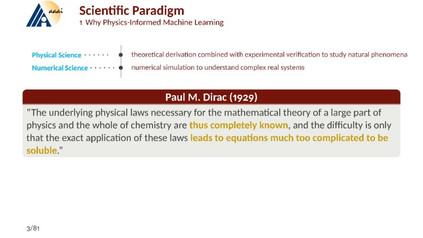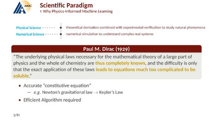 [1] Karniadakis G E, Kevrekidis I G, Lu L, et al. Physics-informed machine learning. Nature Reviews Physics, 2021, 3(6): 422-440. [2] Hao Z, Liu S, Zhang Y, et al. Physics-informed machine learning: A survey on problems, methods and applications. arXiv preprint arXiv:2211.08064, 2022. [3] https://2prime.github.io/files/SML/SciMLReport.pdf Physics-informed Neural Network [1] Wang S, Sankaran S, Wang H, et al. An expert’s Guide to Training Physics-informed Neural Networks, arXiv. preprint. [2] Krishnapriyan A, Gholami A, Zhe S, et al. Characterizing possible failure modes in physics-informed neural networks[J]. Advances in Neural Information Processing Systems, 2021, 34: 26548-26560. [3] Lu Y, Chen H, Lu J, et al. Machine learning for elliptic pdes: Fast rate generalization bound, neural scaling law and minimax optimality. ICLR 2022. [4] Marwah T, Lipton Z, Risteski A. Parametric complexity bounds for approximating PDEs with neural networks. Advances in Neural Information Processing Systems, 2021, 34: 15044-15055. Operator Learning: [1] Kovachki N, Li Z, Liu B, et al. Neural operator: Learning maps between function spaces. arXiv preprint arXiv:2108.08481, 2021. [2] Lu L, Jin P, Pang G, et al. Learning nonlinear operators via DeepONet based on the universal approximation theorem of operators. Nature machine intelligence, 2021, 3(3): 218-229. [3] Lu L, Meng X, Cai S, et al. A comprehensive and fair comparison of two neural operators (with practical extensions) based on fair data. Computer Methods in Applied Mechanics and Engineering, 2022, 393: 114778. [4] Lanthaler S, Mishra S, Karniadakis G E. Error estimates for deeponets: A deep learning framework in infinite dimensions. Transactions of Mathematics and Its Applications, 2022, 6(1). [5] Boullé N, Townsend A. A Mathematical Guide to Operator Learning. arXiv preprint arXiv:2312.14688, 2023.