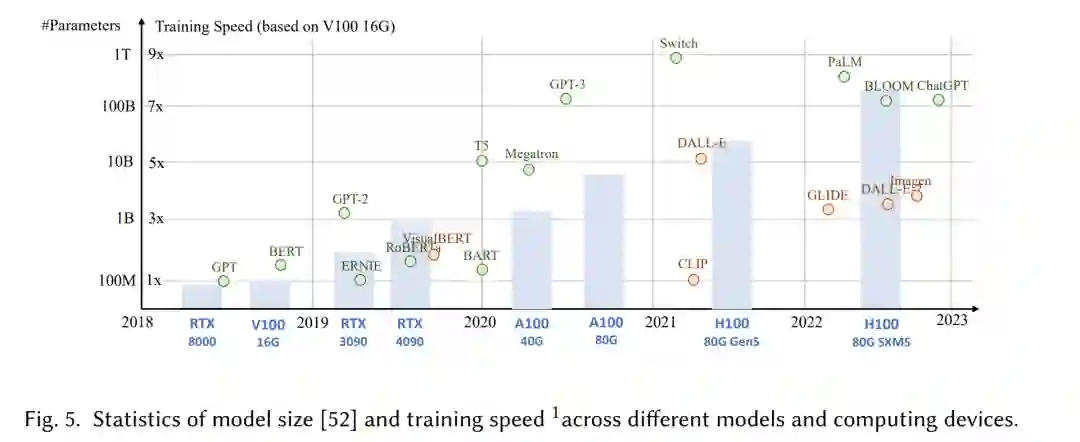 在过去的十年中,具有神经网络的深度生成式人工智能模型一直主导着机器学习领域,其崛起归功于2012年的ImageNet竞赛[210],这导致了一场创建更深入和更复杂模型的竞赛。这种趋势也出现在自然语言理解领域,像BERT和GPT-3这样的模型已经开发出了大量参数。然而,不断增加的模型占用空间和复杂性,以及训练和部署所需的成本和资源,给现实世界中的实际部署带来了挑战。核心挑战是效率,可以分解如下: