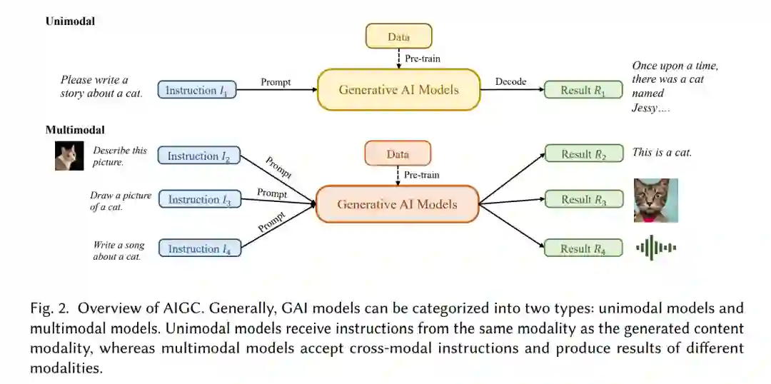 回顾了AIGC的历史和基础技术,并从单模态生成和多模态生成的角度对GAI任务和模型的最新进展进行了全面分析。
