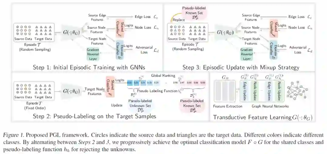 摘要:域偏移是计算机视觉识别中的一个基本问题,通常在源数据和目标数据遵循不同的分布时出现。现有的域适应方法都是在闭集环境下工作的,即假设源数据和目标数据共享完全相同的对象。在这篇论文中,我们解决了一个开放域在迁移时所面临的现实问题:目标域中所包含的一些样本类别在源域中并不存在。具体来说,本文提出了一种端到端的渐进式(PGL)学习框架,该框架集成了一个已训练过的图神经网络来抑制潜在的条件转移,并采用对抗性学习来缩小源域和目标域之间的分布差异。与目前的开放域自适应方法相比,我们的方法能够保证更加接近目标误差的上限。在三个公共基准数据集上的大量实验证明,我们的方法在开放域适应方面的性能明显优于目前的其他方法。