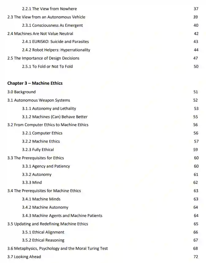第二章致力于探索科学和技术,甚至是人工智能机器,并非没有价值或价值中立的方式。虽然不是我关于实施机器伦理的论点的核心,但一个普遍的想法是,机器可能会做出更 "客观 "的决定,采取更 "客观 "的行动,这种客观性是与主观性相对的。然而,鉴于人类的价值观会以各种方式影响机器的设计和产出,因此无法保证机器会比人类更 "客观"。