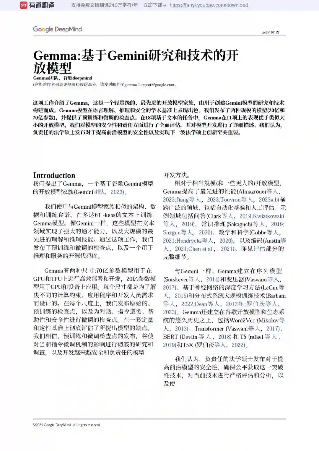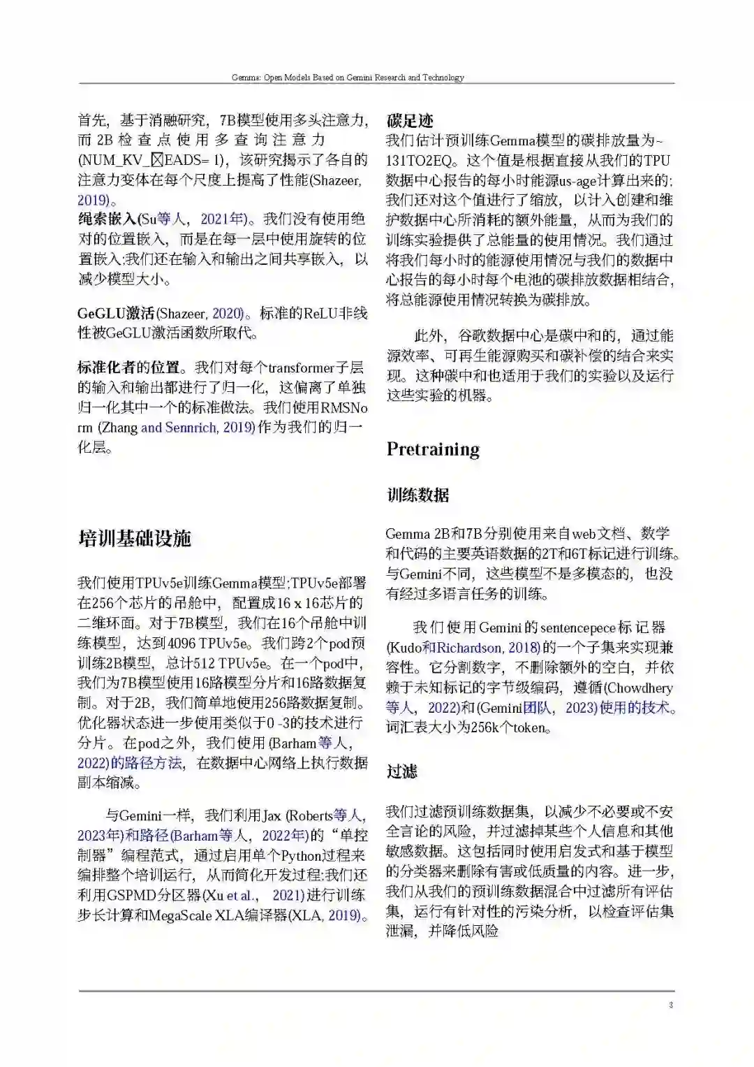像Gemini一样,Gemma建立在序列模型(Sutskever等人,2014年)和transformers(Vaswani等人,2017年)、基于神经网络的深度学习方法(LeCun等人,2015年)以及在分布式系统上进行大规模训练的技术(Barham等人,2022年;Dean等人,2012年;Roberts等人,2023年)之上。Gemma还建立在Google长期的开放模型和生态系统的基础上,包括Word2Vec(Mikolov等人,2013年)、Transformer(Vaswani等人,2017年)、BERT(Devlin等人,2018年)和T5(Raffel等人,2019年)以及T5X(Roberts等人,2022年)。