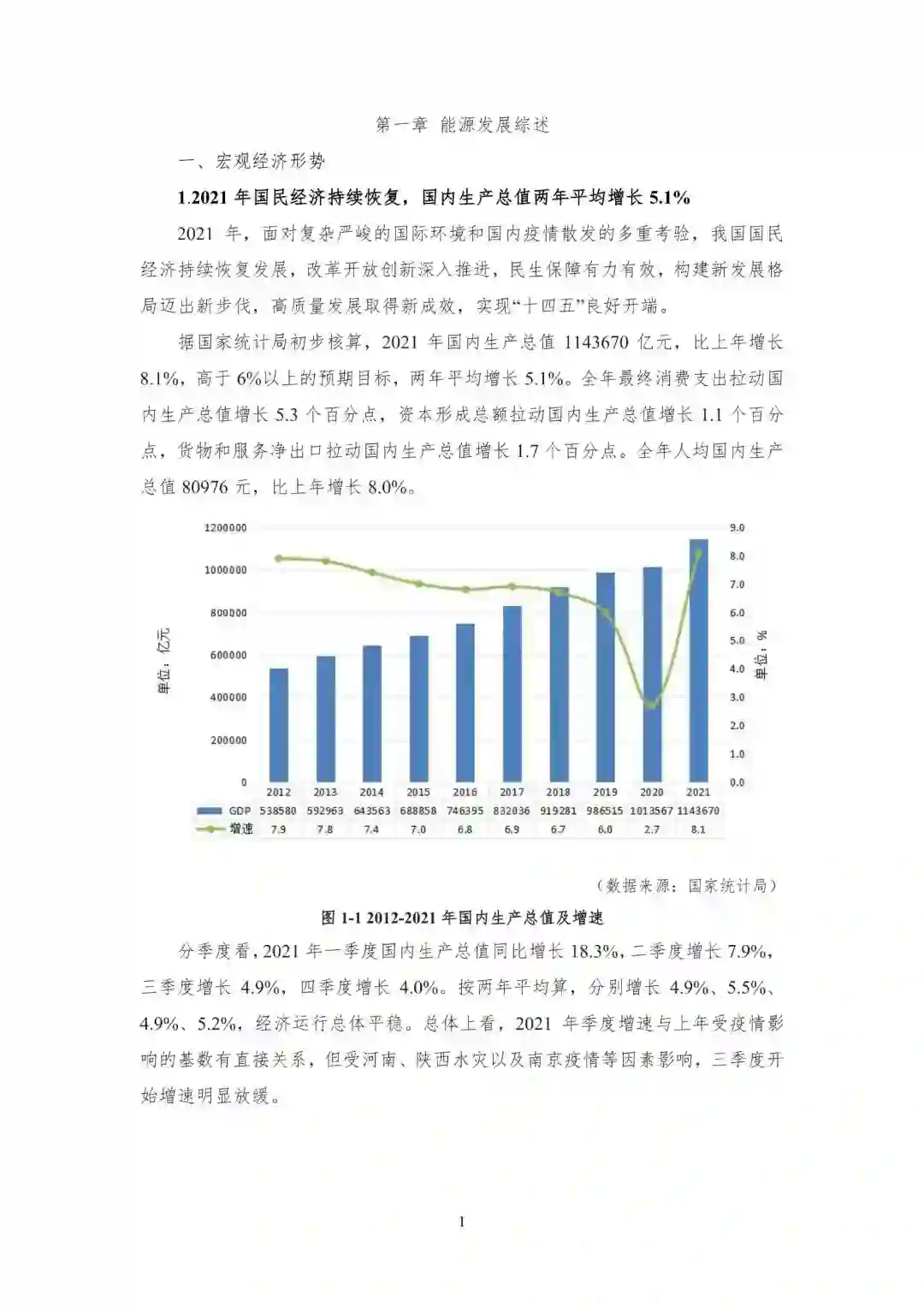 2021年国民经济持续恢复,国内生产总值两年平均增长5.1%