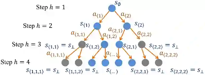 图1:分支强化学习模型示意(当每个状态下允许选择的动作个数为2时)