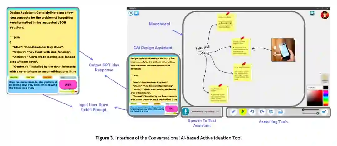 具体来说,这是一种动态、交互、上下文响应式方法,通过大型语言模型(LLM)主动参与,为不同的设计问题生成多个潜在创意陈述。论文称之为「主动构思场景」,它有助于促进基于对话的持续互动、对上下文敏感的对话以及多产的构思生成。