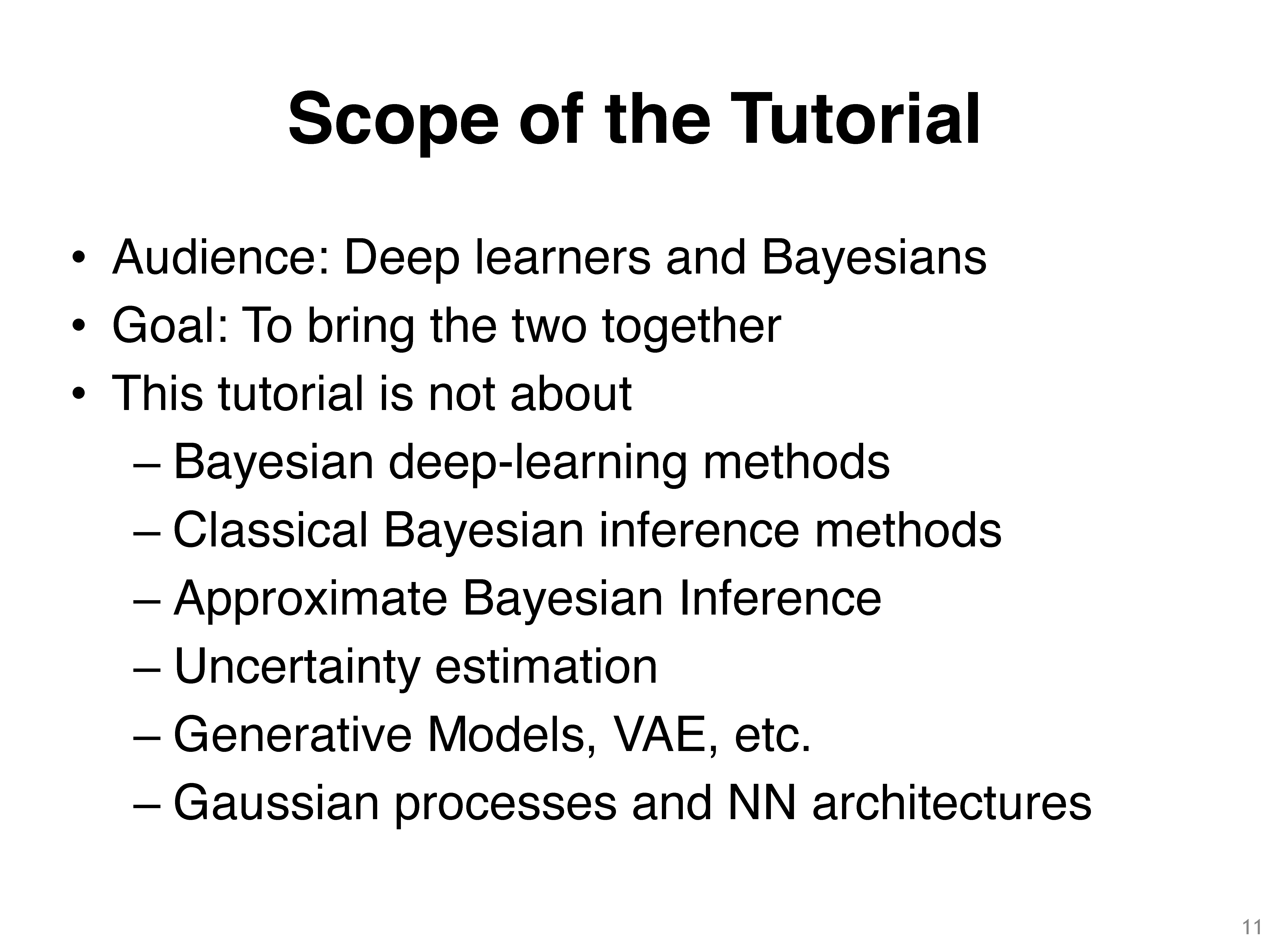 本教程将介绍现代贝叶斯原理来填补这一空白。利用这些原理,我们可以推出一系列学习算法作为特例,例如,从经典算法,如线性回归和前向后向算法,到现代深度学习算法,如SGD、RMSprop和Adam。然后,这个视图提供了新的方法来改进深度学习的各个方面,例如,不确定性、健壮性和解释。它也使设计新的方法来解决挑战性的问题,如那些出现在主动学习,持续学习,强化学习等。