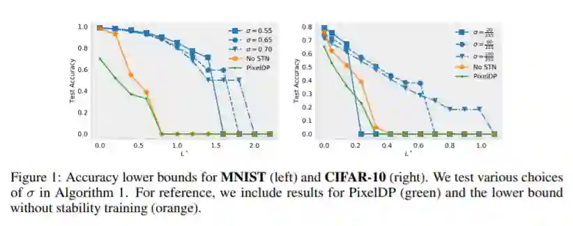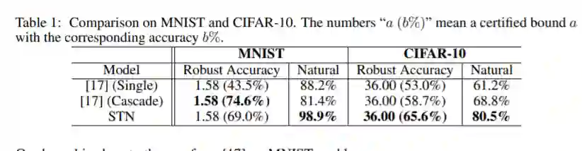 对抗性数据实例的存在引起了深度学习社区的高度重视;相对于原始数据,这些数据似乎受到了最小程度的干扰,但从深度学习算法得到的结果却非常不同。尽管已经考虑了开发防御模型的大量工作,但大多数此类模型都是启发式的,并且常常容易受到自适应攻击。人们对提供理论鲁棒性保证的防御方法进行了深入的研究,但是当存在大规模模型和数据时,大多数方法都无法获得非平凡的鲁棒性。为了解决这些限制,我们引入了一个可伸缩的框架,并为构造对抗性示例提供了输入操作规范的认证边界。我们建立了对抗扰动的鲁棒性与加性随机噪声之间的联系,并提出了一种能显著提高验证界的训练策略。我们对MNIST、CIFAR-10和ImageNet的评估表明,该方法可扩展到复杂的模型和大型数据集,同时对最先进的可证明防御方法具有竞争力的鲁棒性。
