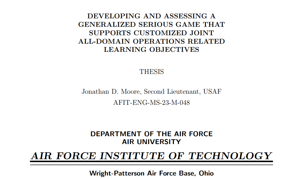 过去几十年来,随着近邻对手的崛起,美国国防部(DoD)越来越重视联合全域作战(JADO)。对 JADO 的重视突出了对实践演习和培训的需求,这些演习和培训可以用来吸引各级军事人员的参与,帮助他们了解自己在联合部队中的重要作用。此外,由于战争所涉及的技术和领域经常演变,这些教学工具必须具有适应性。严肃游戏《下一个作战空间》(BSN)旨在通过在战略纸牌游戏中模拟真实世界的军事资产,教授高级联合全域作战(JADO)/多域作战(MDO)概念。先前的研究表明,BSN 是教授 JADO 基本概念的有效方法;然而,BSN 是围绕一套固定的学习目标 (LO) 设计的,这使其无法适应许多 JADO 培训需求。例如,第 333 网络训练中队和空军研究实验室(AFRL)表示希望在训练中加入 JADO 游戏,但 BSN 的学习目标并不能代表他们的目标。此外,作为本论文的一部分,在高级网络教育(ACE)课程中对学员进行的试点研究发现了 BSN 的不足之处以及定制 BSN 的好处。为了跟上不断发展的战争形势并满足国防部各部门的需求,本研究引入了 “下一代作战空间教育框架”(BSNEF)。BSNEF 允许 JADO 教员根据其独特的 LO 创建自己版本的 BSN。开发该框架和辅助网络应用程序的目的是为教员提供一个灵活而有吸引力的教学开发工具,以设计能有效教授 JADO 概念的游戏。通过对 JADO 教师和严肃游戏主题专家 (SME) 的调查,对该框架进行了评估。此外,还对一项案例研究进行了分析,以确定该框架可代表的概念范围。为了支持 BSNEF,开发了 BSN Game Creator BSN Game Creator (BSNGC) 网络应用程序,以帮助设计者验证和快速制作 BSN 变体的原型。调查反馈、案例研究和 BSNGC 的性能评估表明,BSNEF 可以大大减少创建定制 JADO 游戏所需的时间。这项研究的结果虽然没有得出结论,但表明,使用 BSNEF 将严肃游戏整合到 JADO 培训中,对于扩大教员可用的实践工具非常有用。
