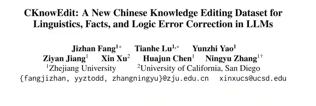 论文题目:CKnowEdit: A New Chinese Knowledge Editing Dataset for Linguistics, Facts, and Logic Error Correction in LLMs