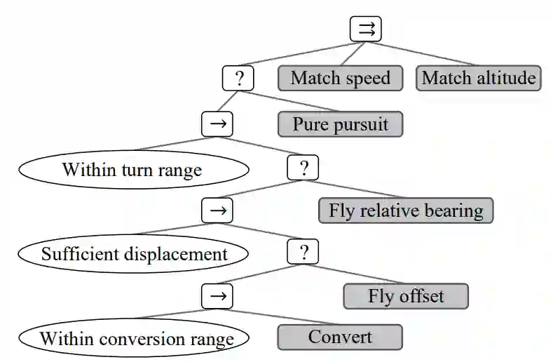 行为建模是战斗机飞行员模拟训练和其他空战应用的基本组成部分。计算机生成部队(CGF)是军事模拟中用于代表友军和敌对部队的自主模拟实体。对它们的行为进行建模,使其行为逼真、像人一样,要求很高。因此,在当今的模拟训练中,飞行员与 CGF 作战时,CGF 的行为是可预测的,通常缺乏真实感。因此,教员必须手动控制 CGF 的许多方面,以确保飞行员获得所需的训练。Freeman 等人提出了实现逼真行为的四个功能要求,即战术推断、战术行动、模式行为和教学能力。