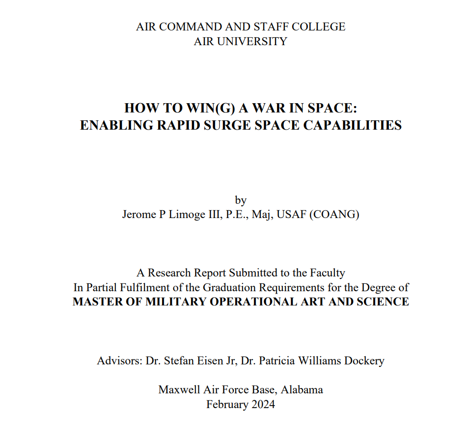 要在各个领域取得成功,就必须有强大的太空作战能力,因此,要想在作战中取得成功,就必须有能力迅速恢复丧失的能力,并在太空能力丧失和减员的情况下快速部署太空作战行动。本研究认为,在通过常规物资采购和人员加入扩大部队规模不可行的情况下,仍然可以获得短时间内扩大太空行动所需的装备、组织和训练有素的部队。通过对特定反太空威胁的透视分析,对其他领域解决方案的定性分析和定量评估表明,采用非常规太空能力,以及利用新兴的条令、培训、物资和人员领导力,为太空部队的快速激增提供了一条可行之路。