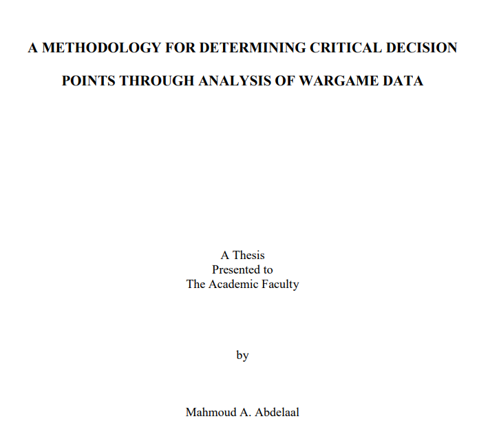 本论文的主要贡献是对兵棋推演数据进行了增强的 COA 分析,从而确定了决策点和启发式方法。其动机是希望提供识别成功 COA 评估指标模式的能力。在这里,利用 CADRE 方法成功地实现了这一目标。通过制定和实验,这项工作帮助创建了考虑内部群组相似性和情景结果统计意义的群组验证指数。此外,这项工作还通过确定元素数量和基本兵棋推演的复杂性比例对联系算法、HSig 指数、决策点识别和启发式方法的选择和性能的影响,进一步拓宽了分析范围。这促使下一个贡献,即在不同分辨率下分析数据的过程,称为 HSig 优化。