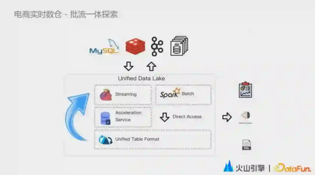 同时在这套架构中,为了解决实时数据湖从分钟级到秒级的最后一公里,我们在实时引擎与数据湖的表之间增加了一层数据加速服务。在这层数据加速服务之上,多个实时作业可以做到秒级的数据流转,而这个服务也会解决频繁流式写入频繁提交导致的小文件问题,为实时数据的交互查询进一步提速。 除此之外,由于流批作业的特性不同,批计算往往会需要更高的瞬时吞吐。因此这些批计算任务也可以直接读写底层的池化文件系统,做到极强的扩展性,真正意义上做到批流写入的隔离,批作业的写入不会受限于加速服务的带宽。在这个批流一体的架构中,数据湖之上的用户,不管是SQL查询,还是BI 、AI ,都可以通过一个统一的 table format 享受到数据湖之上数据的开放性。04****数据湖发展的一些规划