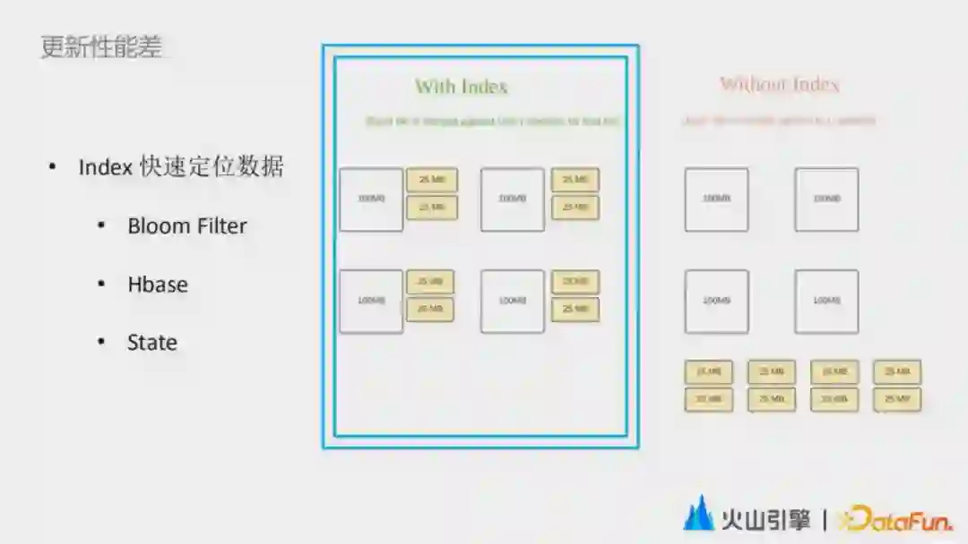 我们最早选择基于Hudi也是因为可扩展的索引系统,通过这个索引系统可以快速地定位到需要跟新的文件。这带来了三点好处: