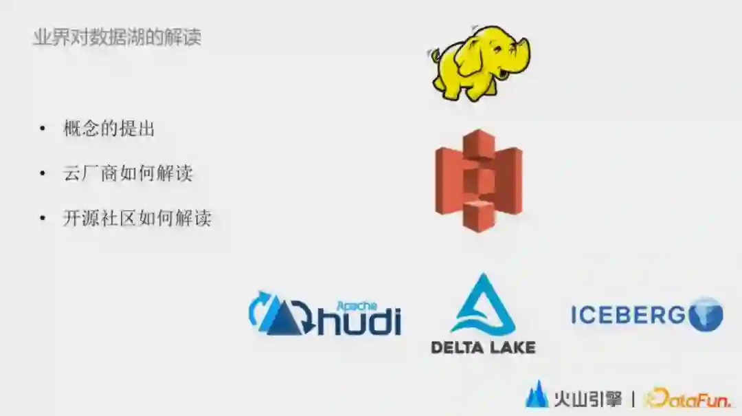 与此同时,Uber最初也将Hudi对外称为一个事务型的数据湖,名字实际上也是由 Hadoop Updates and Incrementals缩写而来,最早也是被用于解决Uber内部离线数据的合规问题。现在他们更倾向的定义是一个流式数据湖平台,Iceberg也常常被人们纳入数据湖的讨论。尽管Ryan Blue一直宣称 Iceberg 是一个Open Table Format。