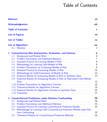 我们在§ 0.1中描述了问题设定和符号。接下来的三个部分考虑在缺失数据的性质不同假设下如何获得有效的预测、评估和公平性评估。§ 1描述了当我们已经测量了所有共同影响决策和感兴趣结果的混淆因素时的方法。在许多决策支持环境中,混淆因素可能难以在运行时测量并输入到预测模型中,但在离线数据集中可能仍然可用于训练和评估。§ 2为这种“运行时混淆”设置提供了方法。§ 3通过拉舍蒙效应的视角深入研究公平和公正的问题,拉舍蒙效应是一种实证现象,即多种模型在总体上达到可比较的好的表现,但在个别预测上却明显不同。§ 4描述了一个框架,用于在算法设计中审查有效性,并最终决定是否在高风险环境中部署一个工具。扩大我们的范围到算法被训练和使用的更广泛的背景中,§ 5提出了一个对刑事司法系统中人类决策的种族偏见进行回顾性统计审计的方法。我们在本节提出的方法也展示了如何在对社会有重大影响的领域使用机器学习来评估这些系统以及在其中行使权力的行动者。我们将本论文中提出的工作与我们的三个指导原则:有效性、公平性和治理,联系起来。