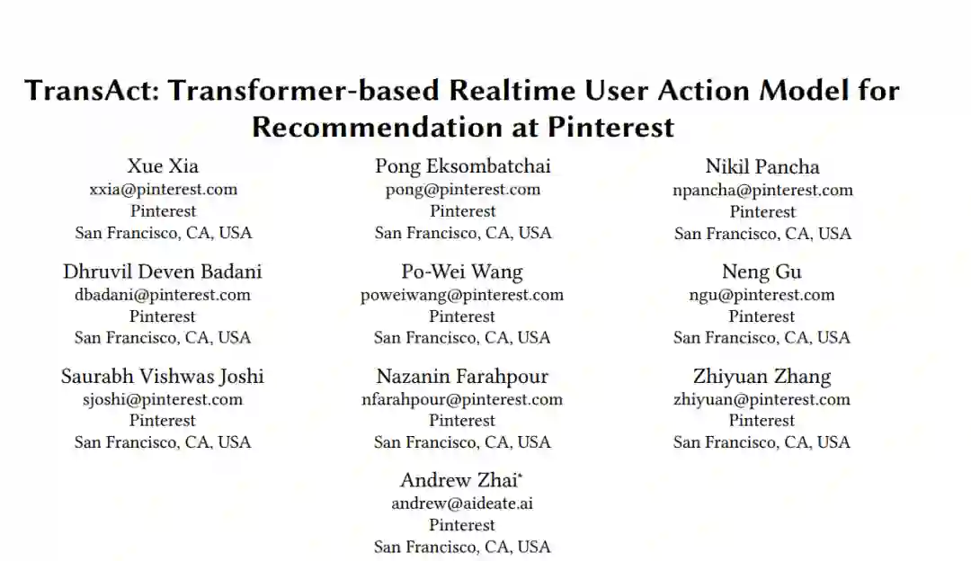 针对下一步动作预测对用户活动进行编码的顺序模型,已经成为构建网页规模个性化推荐系统的热门设计选择。传统的顺序推荐方法要么在实时用户行为上进行端到端学习,要么以离线批量生成的方式单独学习用户表示。本文(1)介绍了Pinterest的Homefeed排名架构,这是我们的个性化推荐产品,也是最大的参与面;(2)提出了TransAct,一个从用户实时活动中提取用户短期偏好的顺序模型;(3)描述了我们的混合排名方法,该方法结合了通过TransAct进行的端到端顺序建模和批量生成的用户嵌入。混合方法使我们能够将直接从实时用户活动中学习的响应性优势与批量用户表示的成本效益结合起来,后者是在较长时间内学习的。我们描述了消融研究的结果,我们在产品化过程中遇到的挑战,以及在线A/B实验的结果,这证实了我们的混合排名模型的有效性。我们进一步展示了TransAct在其他表面,如情境推荐和搜索中的有效性。
