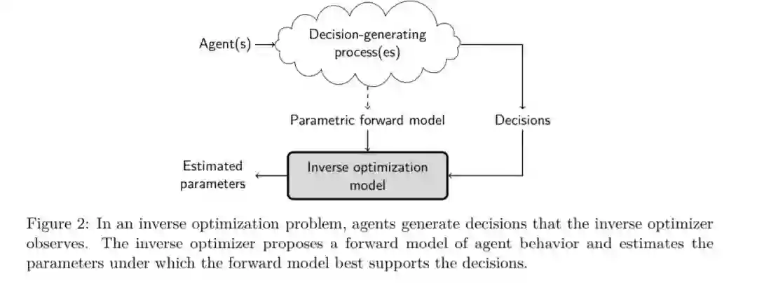 在本文中,我们提供了(i)一个描述和分类逆优化模型的系统框架,(ii)对方法学和应用方向的文献进行了全面的综述。我们首先回顾使用上述分类法的所有现有逆向模型的不同技术、求解方法和模型属性。然后我们巩固了越来越多地应用逆优化的应用领域的广泛列表。据我们所知,之前关于逆优化的研究只有一次,这可以追溯到近20年前[89]。本文对0-1组合前向问题的选择经典逆模型进行了理论综述,这是早期反优化研究的重点。从那时起,我们观察到新的模型、方法和应用的广度,其中许多特定于数据驱动的文献。因此,我们的综述涵盖了适用于广泛类别的问题结构的技术,考虑了特定于数据驱动模型的新发展,并检查了现代应用的广泛列表。