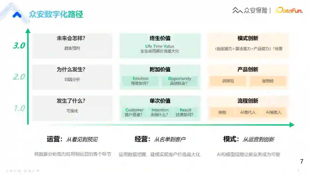 从业务角度来看,众安的数据团队在做三件事。 ① 运营:从看见到预见