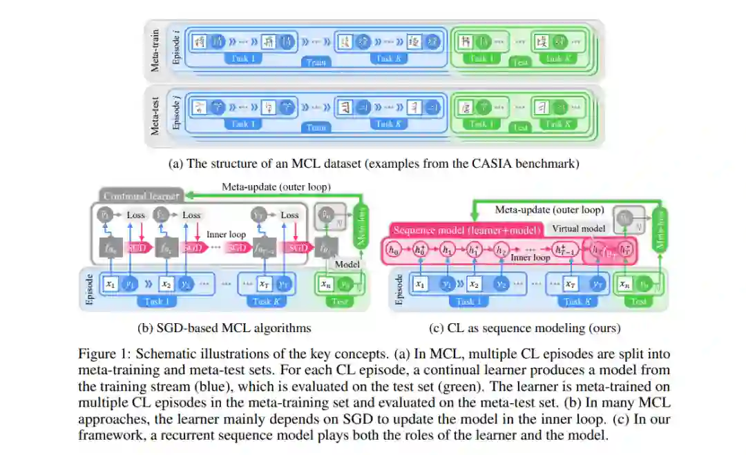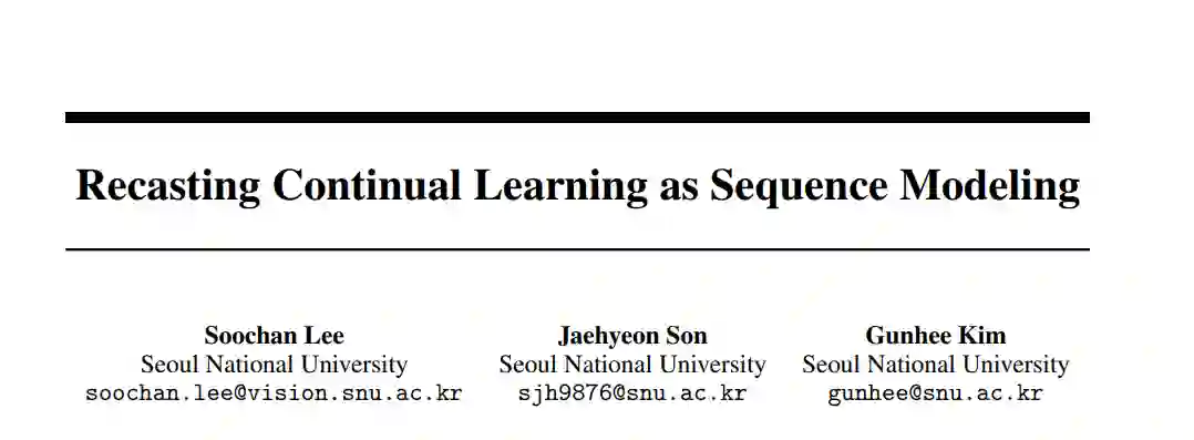 在这项工作中,我们旨在在两大重要的机器学习研究领域之间建立紧密联系:持续学习和序列建模。也就是说,我们建议将持续学习表述为一个序列建模问题,从而允许使用先进的序列模型来进行持续学习。在此表述下,持续学习过程变成了序列模型的前向传递。通过采用元持续学习(MCL)框架,我们可以在元级上训练序列模型,处理多个持续学习情节。作为我们新表述的一个具体示例,我们展示了Transformers及其高效变体作为MCL方法的应用。我们在七个基准测试上的实验,涵盖了分类和回归,显示序列模型可以成为一般MCL的有吸引力的解决方案。