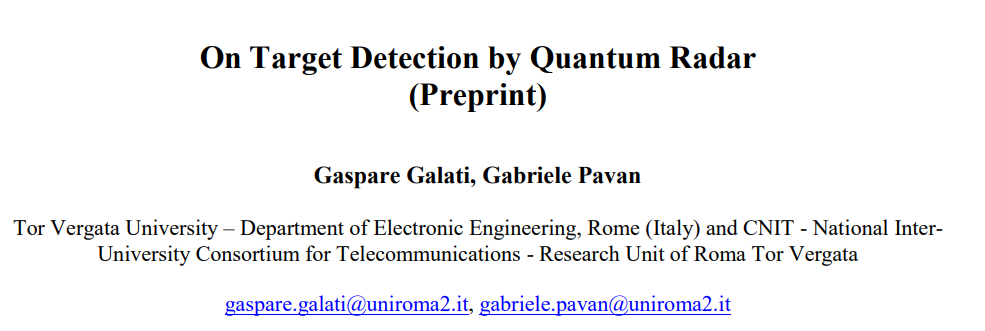关于量子雷达的大部分研究都是基于上述概念,但有一个显而易见的普遍认识(尽管上述专利中没有很好地阐明),即 "反射 "光子在与复杂物体(即目标)发生相互作用(至少)后,会失去纠缠,而(发射或接收路径中的)放大会破坏纠缠。