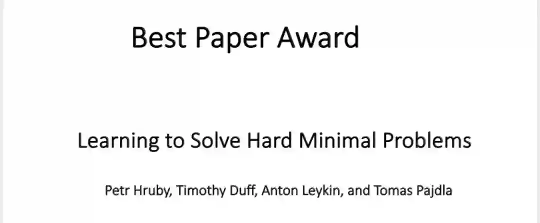论文摘要:该研究提出了一种在 RANSAC 框架中解决困难的几何优化问题的方法。最小化问题源于将原始几何优化问题松弛化(relax)为具有许多虚假解决方案的最小问题。该研究提出的方法避免了计算大量虚假解决方案。研究者设计了一种学习策略,用于选择初始问题 - 解决方案对以用数值方法继续解决原问题。该研究通过创建一个 RANSAC 求解器来演示所提方法,该求解器通过使用每个视图中的 4 个点进行最小松弛化来计算 3 个校准相机的相对位姿。平均而言,该方法可以在 70 μs 内解决一个原始问题。此外,该研究还针对校准相机的相对位姿这一问题进行了基准测试和研究。 最佳论文提名