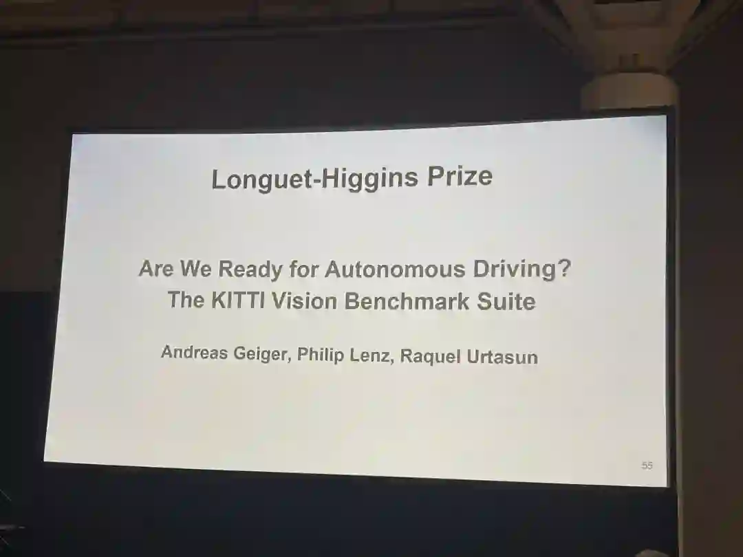 Longuet-Higgins 奖是 IEEE 计算机协会模式分析与机器智能(PAMI)技术委员会在每年的 CVPR 颁发的「计算机视觉基础贡献奖」,表彰十年前对计算机视觉研究产生了重大影响的 CVPR 论文。该奖项以理论化学家和认知科学家 H. Christopher Longuet-Higgins 命名。 今年的获奖论文为 2012 年发表的《Are we ready for Autonomous Driving? The KITTI Vision Benchmark Suite》,当时三位作者中的 Andreas Geiger 和 Philip Lenz 来自卡尔斯鲁厄理工学院, Raquel Urtasun 来自丰田工业大学芝加哥分校。
