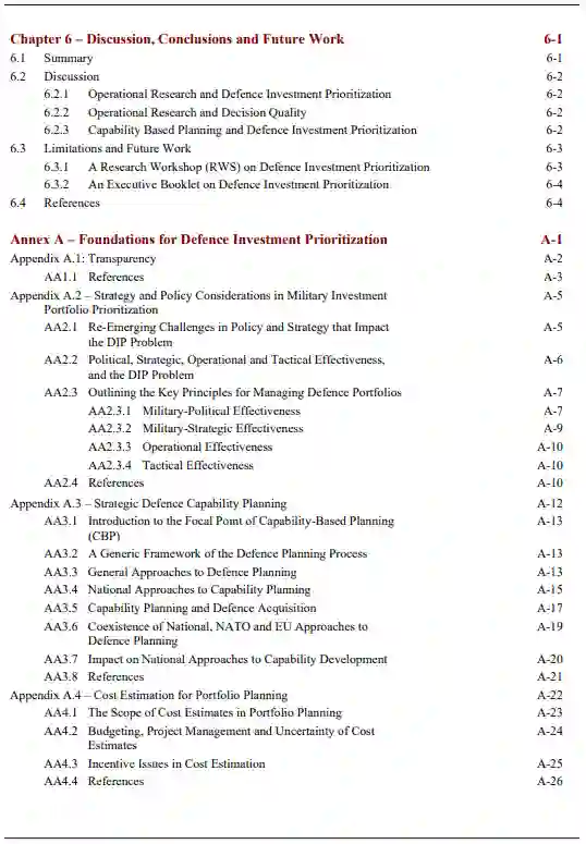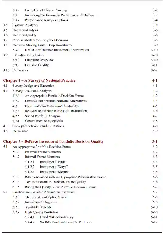 第2章中,我们将问题置于更广泛的国防背景下,并描述了有效的国防投资优先排序的具体前提条件。