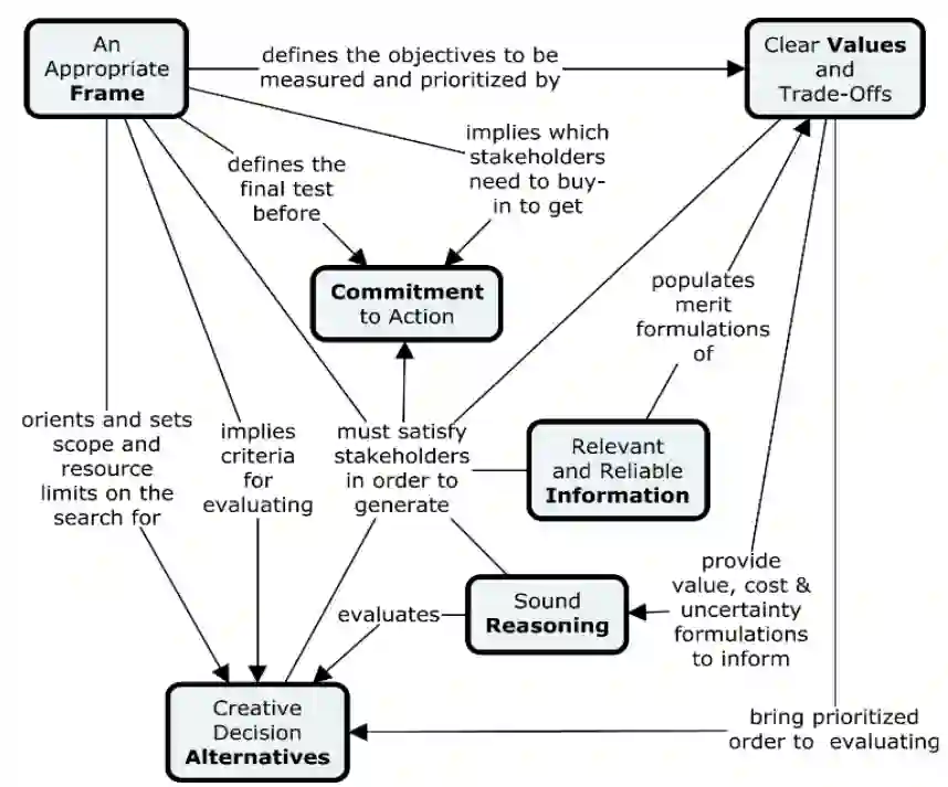 图 3-1:决策质量维度之间的主要逻辑关系。