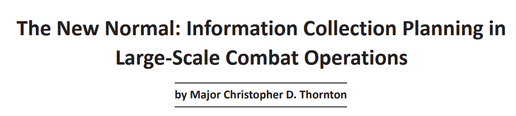 然而,收集管理者首先面临的可视化挑战之一可能涉及预期管理,尤其是那些在收集资产高度密集的战区摸爬滚打的领导者。在战区层面,友军通常可以对大部分行动区域进行持续监视,而威胁可能没有火炮或地对空导弹构成威慑。