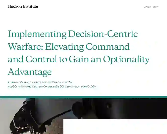 2021年3月,美国哈德逊研究所国防概念与技术中心发布研究报告《实施以决策为中心的战争:提升指挥与控制以获得选择优势》,提出以决策为中心的战争将使美军做出更快、更有效的决策,从而赋予美军更大的竞争优势。