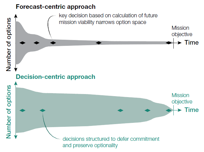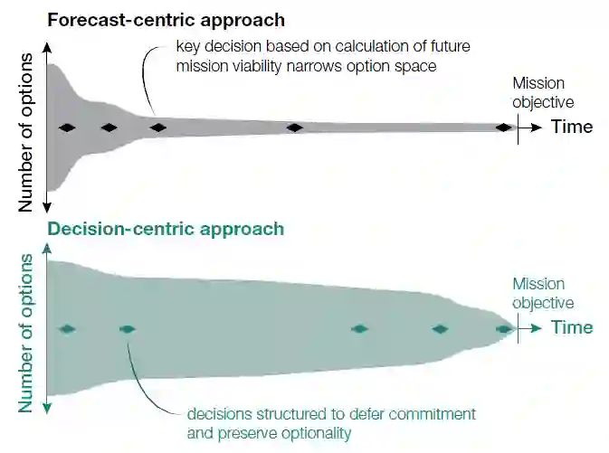选择性战略与以预测为中心的规划方法形成鲜明对比,在这种规划方法中,选择最有可能导致成功的作战行动方案并迅速实施,通过将与未选择的作战行动方案相关的系统和兵力要素分配给其他任务来提高效率。在以预测为中心的模式中,资源的早期承诺必然会限制指挥官今后的选择空间。