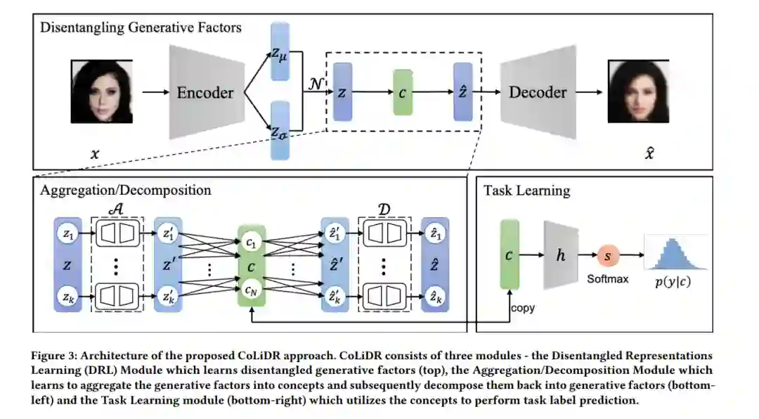 深度神经网络的可解释性研究通过基于概念的模型提供了一种有前景的方法,以人类可理解的概念来解释模型行为。另一条平行的研究路径则侧重于将数据分布解缠为其底层生成因子,从而解释数据生成过程。虽然这两种方向都得到了广泛关注,但很少有工作致力于将生成因子解释为概念,从而将数学上解缠的表示与人类可理解的概念统一起来,以用于下游任务的解释。在本文中,我们提出了一种新方法CoLiDR,该方法利用解缠表示学习框架来学习相互独立的生成因子,并随后通过一个新颖的聚合/分解模块将这些表示聚合为人类可理解的概念。我们在具有已知和未知潜在生成因子的数据集上进行了实验。实验结果表明,我们的方法能够成功地将解缠的生成因子聚合为概念,同时与最先进的基于概念的方法保持一致。对学习到的聚合过程的定量和可视化分析显示了我们的方法相较于常用的基于概念的模型在四个具有挑战性的数据集上的优势。最后,我们的方法可以推广到任意数量的概念和生成因子,使其足够灵活,适用于各种类型的数据。