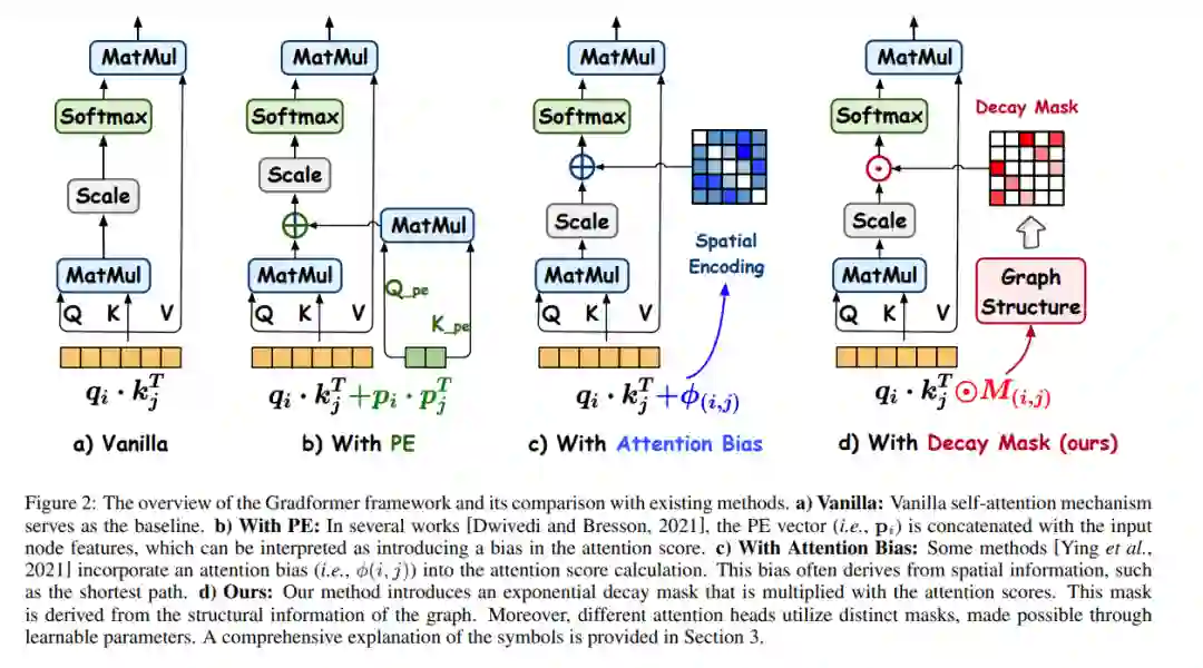 图变换器(GTs)已在广泛的任务中展示了其优势。然而,GTs中的自注意力机制忽略了图的归纳偏见,尤其是与结构相关的偏见,这些对图任务至关重要。尽管一些方法利用位置编码和注意力偏差来模拟归纳偏见,但从分析角度来看,它们的效果仍然不是最佳的。因此,本文提出了Gradformer,这是一种创新性地将GT与内在归纳偏见整合的方法,通过在注意力矩阵上应用指数衰减掩码来实现。具体来说,衰减掩码矩阵中的值呈指数级减小,与图结构内减小的节点邻近度相关联。这种设计使Gradformer能够在关注图的局部细节的同时,保持从远处节点捕获信息的能力。此外,Gradformer引入了一个可学习的约束到衰减掩码中,允许不同的注意力头学习不同的衰减掩码。这样的设计使注意力头多样化,使得能够更有效地同化图中的多样化结构信息。在各种基准测试上的广泛实验表明,Gradformer在各种图分类和回归任务中始终优于图神经网络和GT基线模型。此外,Gradformer已被证明是训练深层GT模型的有效方法,在网络加深的情况下,与其他GT模型观察到的显著准确率下降相比,它保持甚至提高了准确率。代码可在 https://github.com/LiuChuang0059/Gradformer 获取。