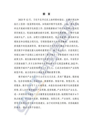 来源:中国信息通信研究院 2023年12月,习近平总书记在上海考察时指出,在城市规划和执行上坚持一张蓝图绘到底,加快城市数字化转型。上海、重庆等地率先开展城市数字化转型工作,坚持数据驱动下的技术创新与机制变革同频发力,创造性地解决城市治理、服务和发展难题,以数字化驱动城市生产、生活、治理方式整体性转变,革命性重塑,推进城市治理体系和治理能力现代化,引领智慧城市走向数据融通、全域转型、质效提升的发展新阶段。数字城市成为数字时代推进中国式现代化、落实数字中国建设重大战略的重要抓手。在政策、技术、市场等多方因素助推下,多方主体争相布局数字城市万亿级蓝海赛道,数字城市产业成为加快城市产业结构转型升级、助力经济社会高质量发展的重要引擎。 基于此,中国信息通信研究院成立项目组,开展数字城市产业研究工作,编制了《数字城市产业研究报告》。近日,该报告正式发布。 报告结合城市数字化转型最新形势,深入分析数字城市产业周期、投资规模、产业布局及产业生态,进一步洞察数字城市咨询服务、基础设施、数据要素、智能中枢、智慧应用、运营服务、数字安全等7大关键要素发展最新态势,梳理AI大模型、数据流通、算力设施、数字文旅4大热点板块,并从技术创新、数据赋能、场景应用、产业协同、运维运营等方面提出数字城市发展建议。