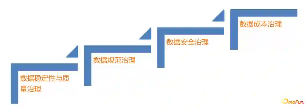 随着数据行业的发展,数据治理的内涵也逐步泛化,涵盖了更多的方面和层次,比如数据发现可用,数据及时稳定产出,数据质量保障,数据安全合规,数据生产的经济性等。对于企业的不同发展阶段,数据治理的需求也存在着差异。