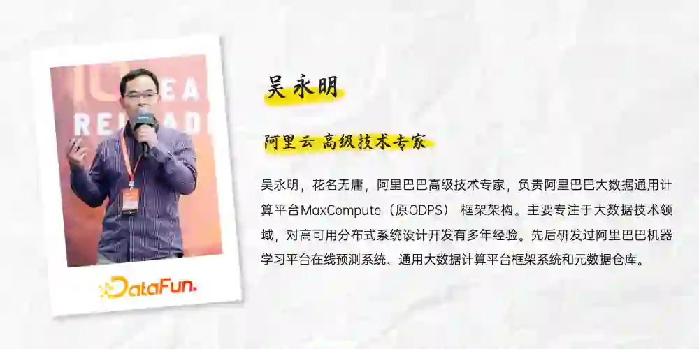 分享嘉宾:吴永明 阿里云 高级技术专家 编辑整理:Taylor 东南数据实验室 出品平台:DataFunTalk