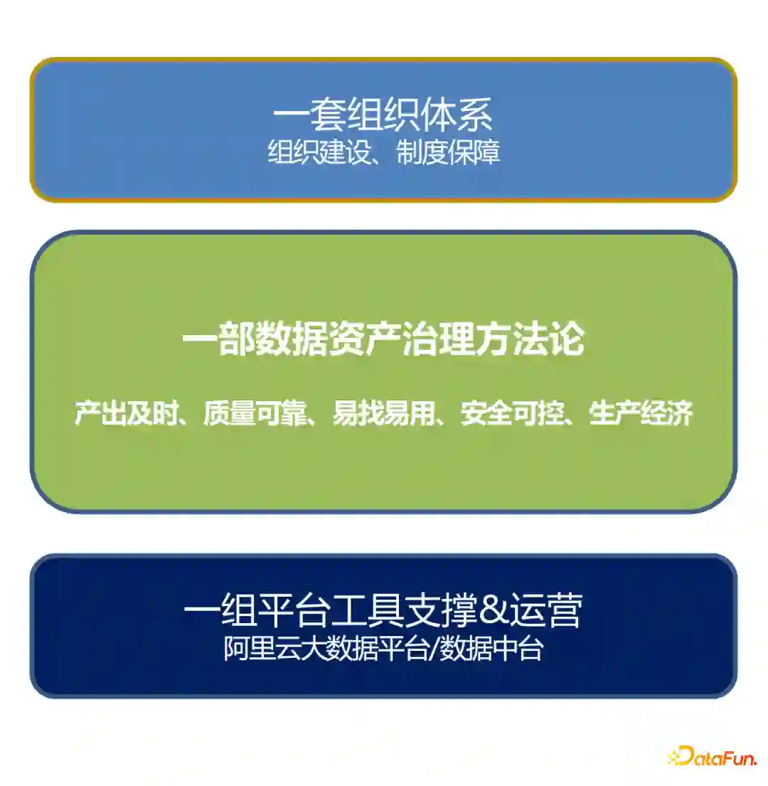 阿里构建了以数据管理团队负责人、业务线数据负责人、数据平台负责人为核心的虚拟数据治理小组,从组织上划分清洗数据治理的权责边界, 并且从管理办法、管理流程、技术规范及模板等建立起完整的数据治理制度保障。