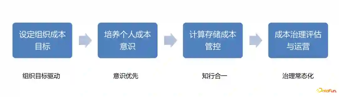 通过设立组织大的成本目标,然后通过培养个人的成本意识,在数据的计算与存储、治理与运营层面建立具体目标去细化和落地,来推进数据治理方面的成本管理。比如阿里巴巴2020年成本治理的目标:数据成本增速不能超过业务增速。