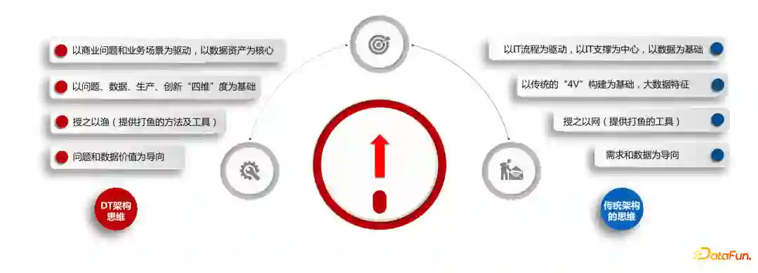 治理中的痛点有很多,往往是由于认识不足导致的,尤其是思维方式。信息技术的飞速发展,使得信息的架构已经从传统基于需求的IT架构发展为基于数据的DT架构,思维方式也需要相应地升级到围绕数据资产化、数据价值释放为核心的新模式。